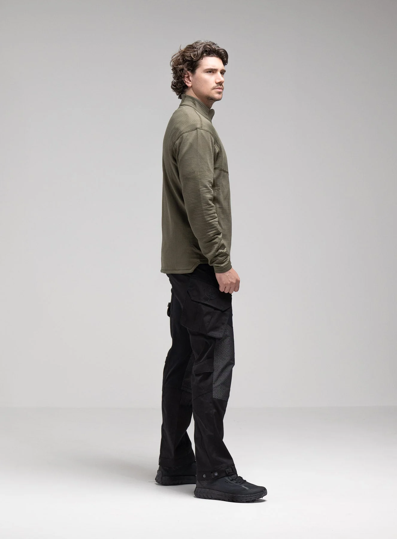 Men's lightweight, full-zip fleece mid-layer in khaki, constructed from PolartecĀ® Power Gridā¢. Ideal for hiking and mountaineering in colder climates, offering insulation without overheating. Features elasticated sleeve cuffs and two YKKĀ® zipped hand pockets.
