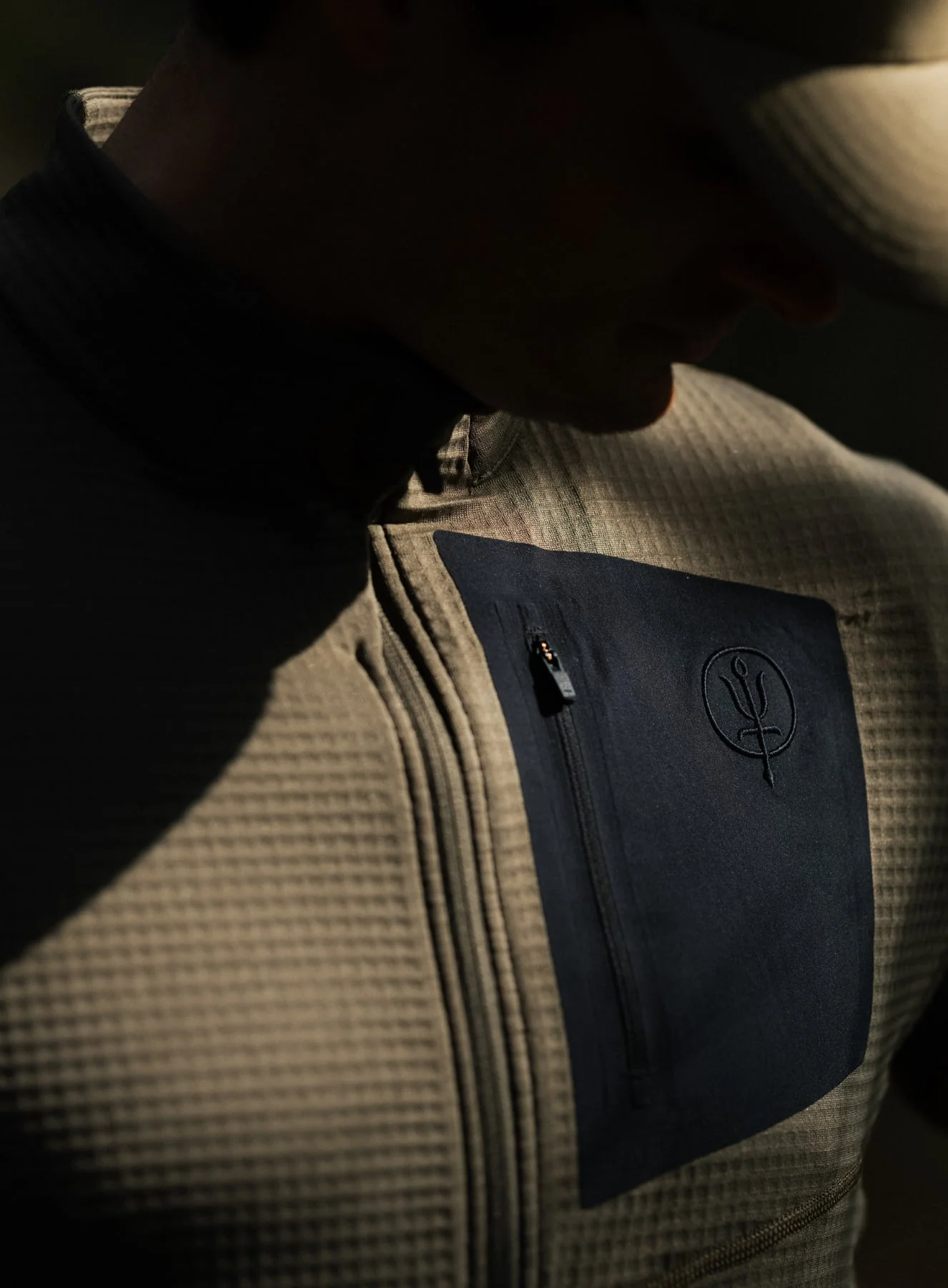 Men's khaki lightweight fleece mid-layer designed for hiking and mountaineering in colder climates. Constructed from Polartec® Power Grid⢠for insulation without overheating. Features half zip design to balance heat retention and venting, elasticated sleeve cuffs with ThruDark detailing and chest pocket for storage.