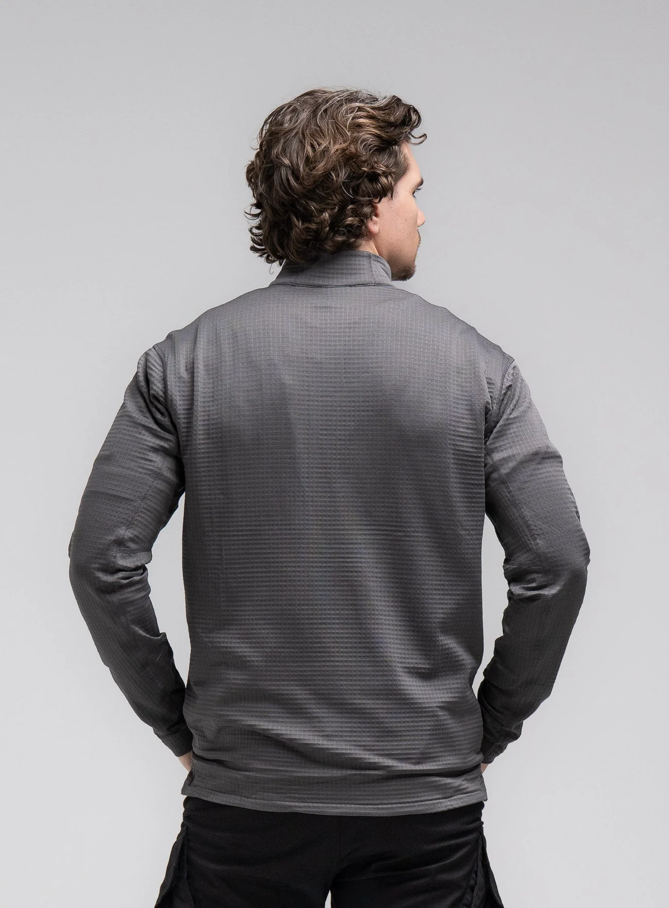 Men's grey lightweight fleece mid-layer designed for hiking and mountaineering in colder climates. Constructed from Polartec® Power Grid⢠for insulation without overheating. Features half zip design to balance heat retention and venting, elasticated sleeve cuffs with ThruDark detailing and chest pocket for storage.