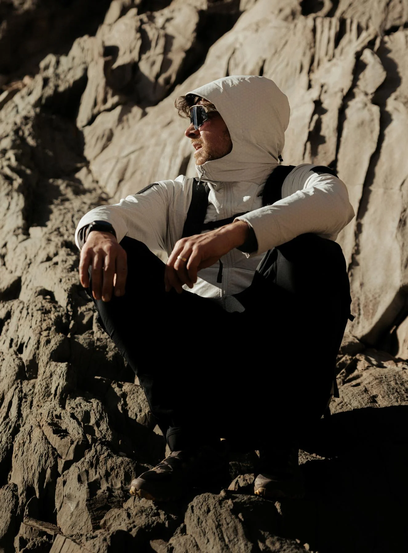 The men's grey Veles jacket is an enhanced soft shell jacket designed for multi-purpose outdoor and urban use. With our own DarkMatr™ fabric construction, a recycled nylon bolstered with graphene for durability and thermal regulation.